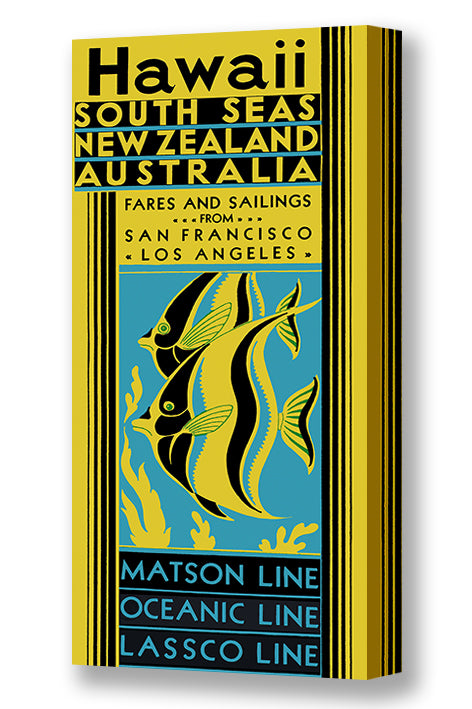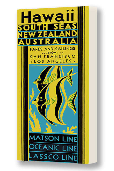 In 1926, Matson acquired Oceanic Lines, expanding their sailings to the South Seas, while Matson's eventual merger with LASSCO in 1930 added Los Angeles as a new US mainland starting point. This bright and playful brochure highlighted this and enticed travelers to discover new routes and adventures from San Francisco, LA, Hawaii, New Zealand, and Australia.